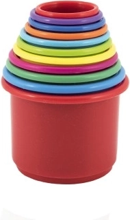 De set van kleurrijke stapelbekers bevat 11 onderdelen die gebruikt kunnen worden om een hoge toren te bouwen. De bekers zijn in verschillende kleuren en kunnen in elkaar gestapeld worden, wat een geweldige manier is om de fijne motoriek van uw kind te ontwikkelen.