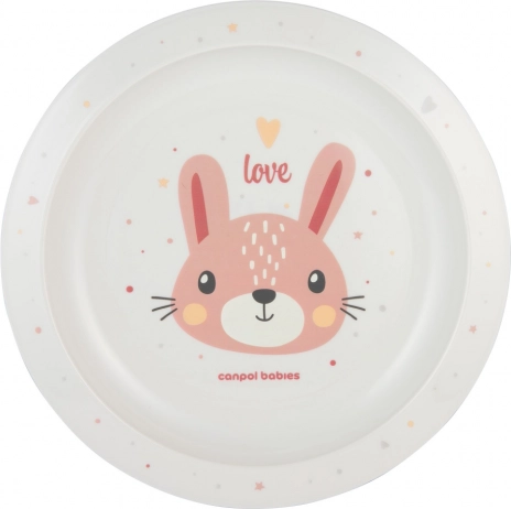 Het plastic kinderbord met een schattig konijnenmotief zal kleine eters blij maken en is bestand tegen dagelijks gebruik. Dankzij het lichte ontwerp en de brede rand ligt het bord comfortabel in de hand en is het gemakkelijk te dragen. Het materiaal is val- en schokbestendig, dus het breekt niet zoals glas of keramiek.