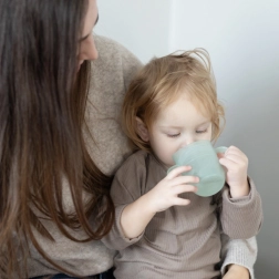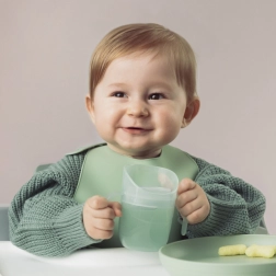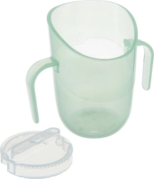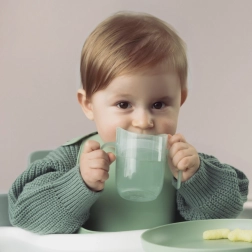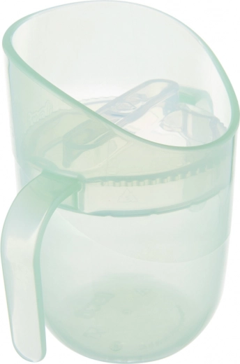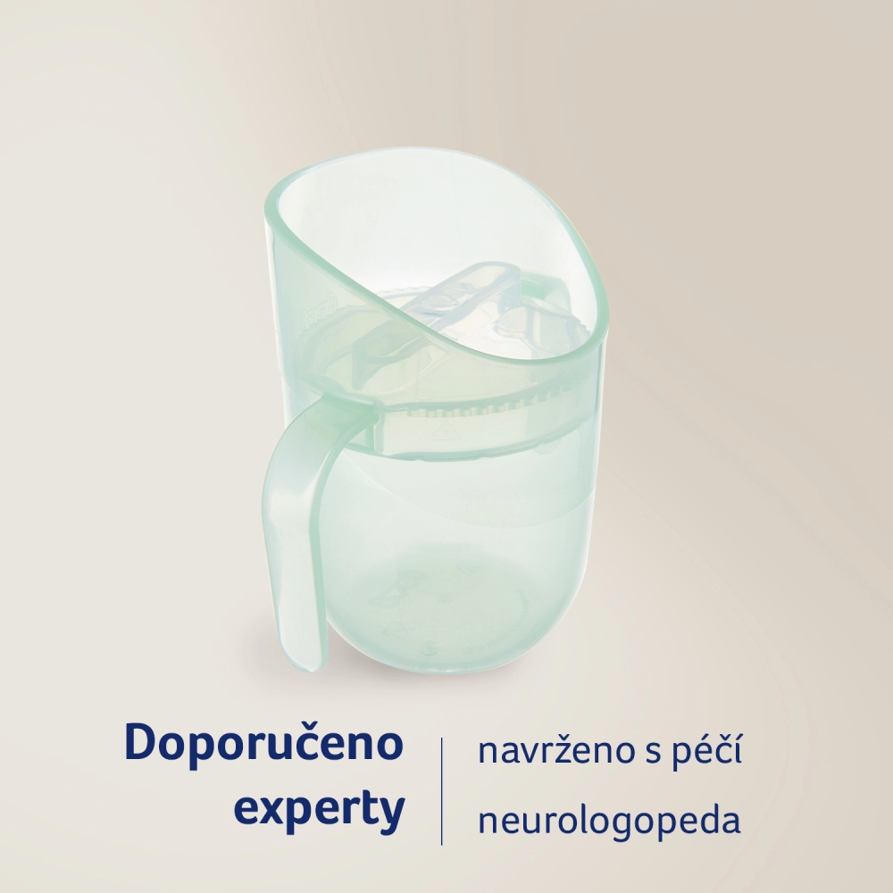 Het lichte ontwerp, twee brede oortjes en het compacte formaat maken hem perfect voor beginners. Zodra het kind de juiste techniek beheerst, verwijder je eenvoudig het inzetstuk en wordt de beker een open beker met een inhoud van 150 ml – één product dat echt meegroeit met het kind.