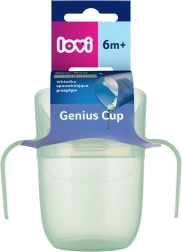 De LOVI Genius trainingsbeker is ontworpen in samenwerking met logopedisten om natuurlijk drinken uit een open beker na te bootsen zonder het risico van overmatige hoofdachteroverbuiging. Het interne inzetstuk vertraagt de doorstroming en helpt morsen en verslikken te voorkomen. Transparante wanden maken het voor het kind mogelijk het vloeistofniveau te zien en voor ouders om de gedronken hoeveelheid gemakkelijk te controleren.