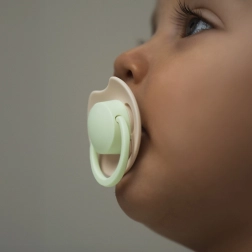 De kern en de greep van de fopspeen gloeien zacht, zodat je hem in het donker snel vindt zonder je kind onnodig wakker te maken.