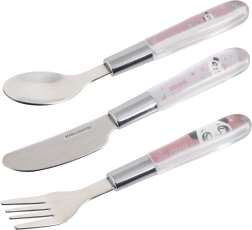 Deze set metalen kinderbestek is ontworpen voor kinderen die leren zelf te eten. Ergonomische vormen en een licht ontwerp ondersteunen goede eetgewoonten en een comfortabele grip in kinderhanden. Veilige, afgeronde randen beschermen het tandvlees en zorgen voor rustig tafelen.