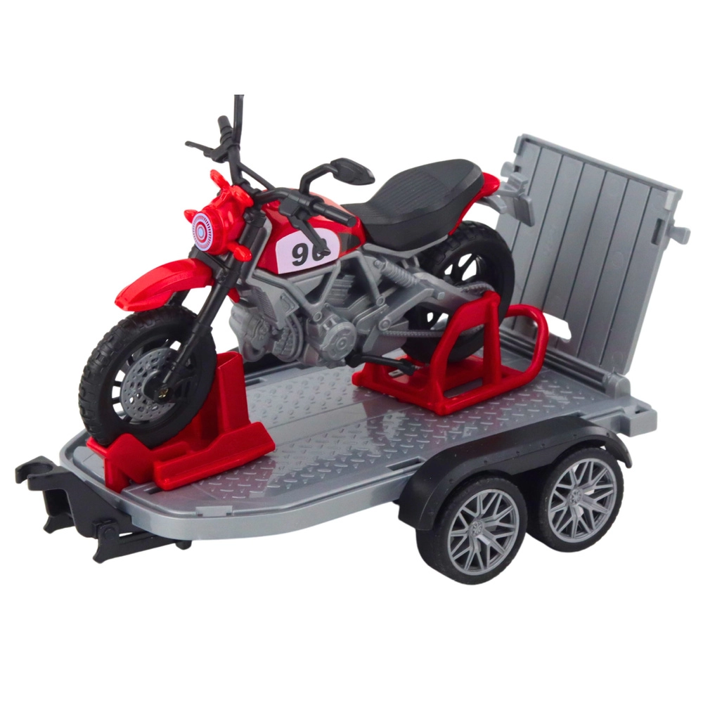 De tandemasser-aanhanger met functionele oprijplaat maakt het laden van de motor eenvoudig en vergroot de speel- en transportmogelijkheden.