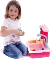 Deze roze kindergotensteen is ideaal voor alle kleine helpers in de keuken. De gootsteen heeft: