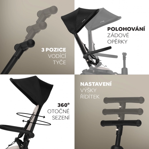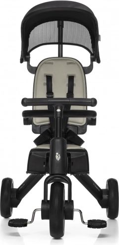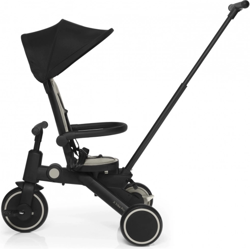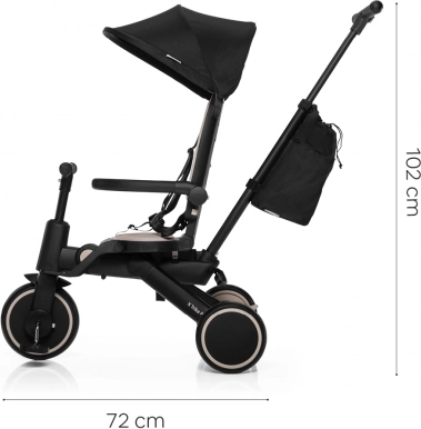 De ergonomisch gevormde en zacht gewatteerde zitting, de voetensteun voor de kleintjes, het zonnescherm met schaduw en de 5-puntsveiligheidsgordels zorgen voor een soepele en veilige rit. Dankzij het snelle inklappen in 3 seconden en de compacte afmetingen is de driewieler ideaal voor reizen, uitstapjes en in de auto. Afneembare onderdelen (rugleuning, pedalen, duwstang, zonnescherm) maken het mogelijk de driewieler aan te passen aan de leeftijd en vaardigheden van het kind.