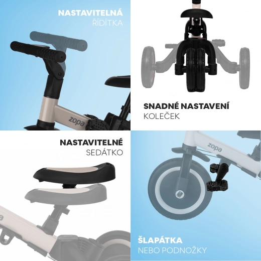 Kinder meegroeitrike Zopa Razor Pro 6-in-1 Ivory Beige met duwstang