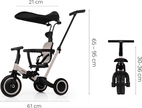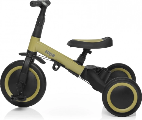 De meegroeidrie-wieler Zopa Razor Pro 6-in-1 in de kleur Kodi Bronze biedt tot zes gebruiksmodi: van driewieler met kap tot loopfiets en klein fietsje. Dankzij het slimme design, verstelbare onderdelen, veiligheidsbeugel, vijfpuntsgordels en lange zonnekap biedt hij comfort en veiligheid in elke leerfase. Ouders waarderen de in hoogte verstelbare duwstang en de eenvoudige, gereedschapsloze ombouw.