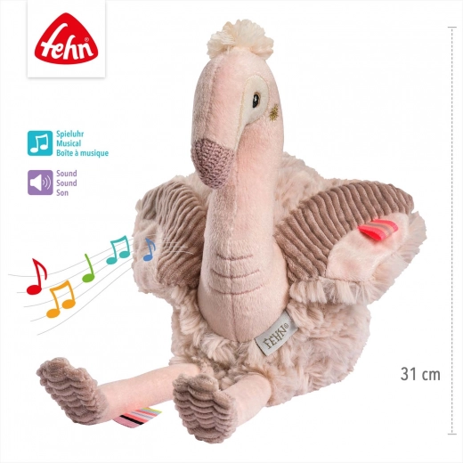 Kalmerende pluche flamingo met uitneembare geluidsmodule en huilsensor helpt kinderen vanaf de geboorte beter in slaap te vallen. Biedt tot 10 aangename geluiden, intuïtieve bediening met één knop en automatische uitschakeling na twee uur. Zachte materialen en een lief ontwerp maken hem tot de ideale bedtijdgenoot.