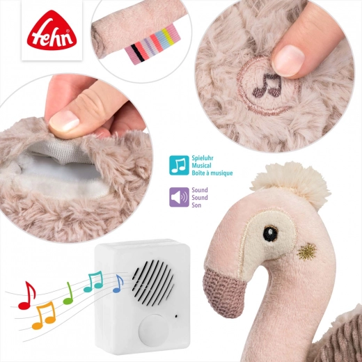 De roze flamingo is een zachte slaaphulp die rustgevende geluiden combineert met knuffelzacht pluche voor een kalme bedtijd voor baby’s. Dankzij de ingebouwde huilsensor reageert hij op de behoeften van het kind en biedt hij ook ’s nachts zachte geruststelling. De uitneembare elektronische module maakt eenvoudig onderhoud van de knuffel mogelijk.