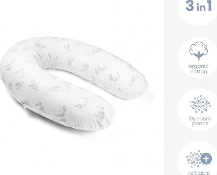 Het grote zwangerschaps- en voedingskussen DOOMOO Buddy past zich perfect aan het lichaam van moeder en baby aan. De zachte elastische hoes en de stille vulling van micro polystyreenbolletjes zorgen voor rustig zijslapen, comfortabel voeden en veilige positionering van het kind. In het Bear Family Grey design past het subtiel in elk interieur.