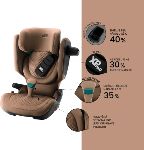 De premium autostoel BRITAX RÖMER Kidfix Pro Lux voor kinderen van 100–150 cm biedt topbescherming volgens ECE R129/03 (i-Size), XP-PAD en SecureGuard voor correcte en veilige gordelgeleiding, geavanceerde zijbescherming SICT en een comfortabel, slank design, waarmee tot drie stoelen naast elkaar kunnen worden geïnstalleerd. Duurzame hoezen van luxueuze stoffen, ventilatie en een ergonomische hoofdsteun zorgen voor comfort, ook tijdens lange ritten.