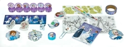 Binnenin vind je een gevarieerde mix van accessoires en schoolspulletjes – van mini-stempels en stickers tot een notitieboekje of gevormde gum. Alles in winterse FROZEN-stijl, zodat elke adventsdag echt magisch is.