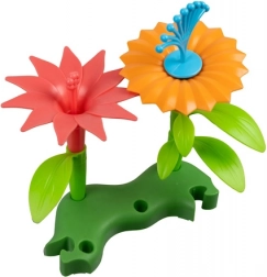 Met deze kleurrijke bouwset kunnen kinderen stelen, bladeren, bloembladen en stampers combineren tot unieke bloemcomposities. Dankzij de modulaire onderdelen kun je de bloemen steeds weer aanpassen en uitbreiden, wat zowel de creativiteit als het logisch denken stimuleert. Stabiele groene bodemplaten houden de creaties stevig op hun plaats.