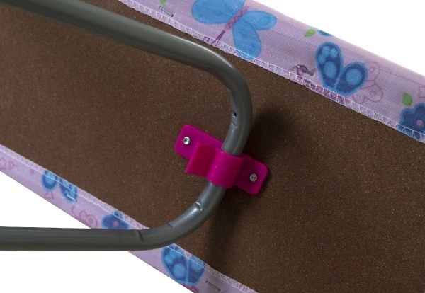 De kinderstrijkplank is ontworpen voor kleine helpers die volwassenen willen nadoen bij huishoudelijke taken. Het metalen frame met inklapmechanisme en het duurzame houten blad zorgen voor stabiliteit en een lange levensduur. De kleurrijke, speelse hoes met vlindermotieven geeft elke kinderkamer extra flair.