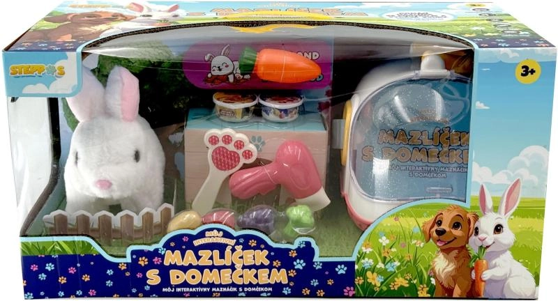 Het schattige interactieve konijntje STEPPOS brengt kinderen plezier én leert hen zorgen. Het beweegt, maakt geluiden en reageert als een echt huisdiertje. Inclusief een draagbaar huisje, kam en föhn voor de verzorging en kunststof lekkernijen om mee te “voeren”. Een geweldig speelgoed voor het stimuleren van de fantasie en verantwoordelijkheid, met realistische geluiden en bewegingen en compleet accessoireset.