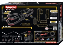 - Klaar om te racen: 2 auto’s, 2 controllers met Turbo, voeding, vangrails en rondenteller.