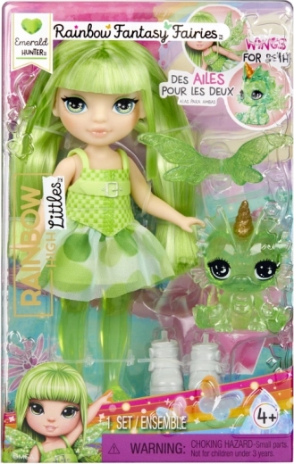 Duik in de betoverende collectie mini-feeën Rainbow High Littles Rainbow Fantasy Fairies, die kleurige fantasie naar elke kinderkamer brengt. Elke pop heeft een unieke outfit, lang haar om te kammen en te stylen, en transparante benen in haar kenmerkende kleur. Inclusief een magisch huisdiertje – een dierenvriend met makkelijk verwisselbare vleugels, die je zowel aan de pop als aan het huisdiertje kunt bevestigen.