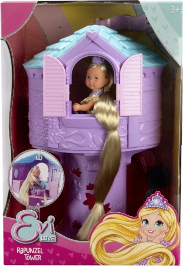 De Evi Love toren Rapunzel brengt een sprookjeswereld direct naar de kinderkamer. De Evi-pop met lang haar en de gedetailleerde toren met een te openen raam nodigen uit tot het vertellen van verhalen en het naspelen van scènes geïnspireerd op het geliefde sprookje.