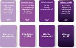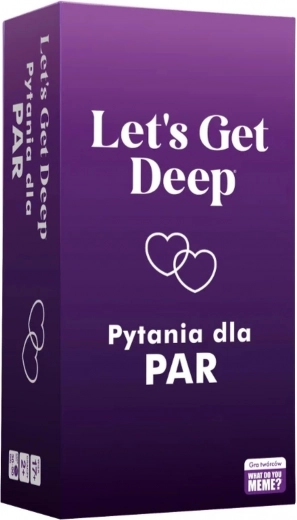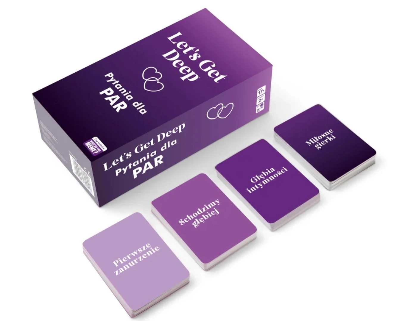 Het spel Let's Get Deep is de ideale keuze voor koppels die hun momenten samen willen kruiden en elkaar beter willen leren kennen. De kaarten zijn verdeeld in vier categorieën – Eerste duik, Dieper gaan, Diepte van intimiteit en Liefdesspellen – en nemen je stap voor stap mee van luchtige onderwerpen naar intiemere vragen.