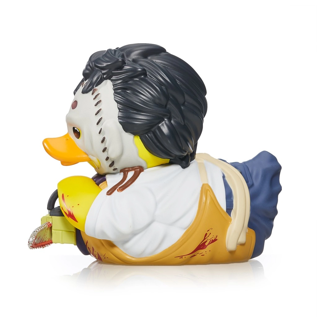 Officieel gelicentieerd TUBBZ verzamel-eendje in de stijl van LEATHERFACE uit de film The Texas Chainsaw Massacre, met een uniek ontwerp en premium verpakking. Gelimiteerde editie met nummering, ca. 9 cm hoog, gedetailleerd afgewerkt van PVC en met iconische kettingzaag. Ideaal voor display – niet voor gebruik in water.