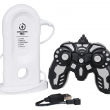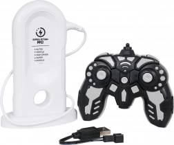 Bijgevoegd zijn een station dat het laden simuleert en een USB-kabel. De oplaadbare 3,7 V-accu zit in de verpakking; plaats alleen batterijen in de controller.