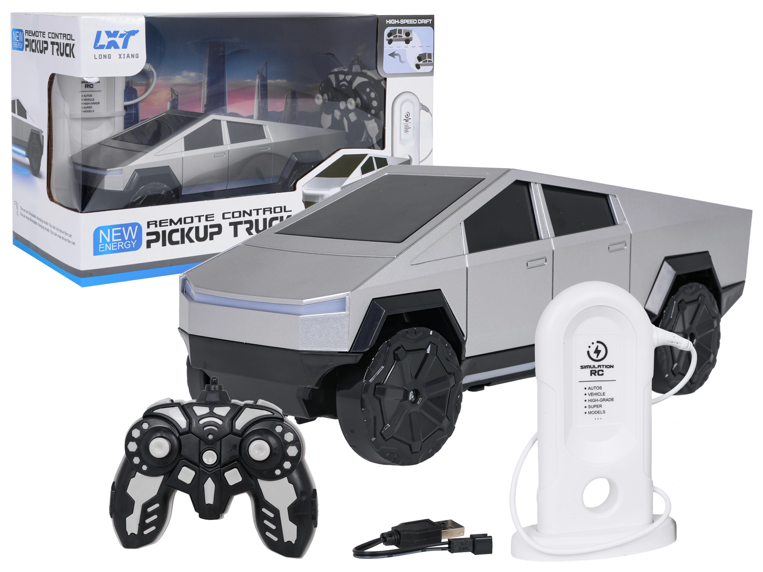 De zilveren RC auto Track presenteert zich als een stijlvol en duurzaam model voor dagelijks plezier. Dankzij de hoogwaardige afwerking, verlichting aan de voor-, zij- en achterkant en de grote banden rijdt hij soepel vooruit en achteruit, met precies sturen en indrukwekkend driften. De ergonomische controller op 2,4 GHz garandeert betrouwbare besturing zonder storingen.
