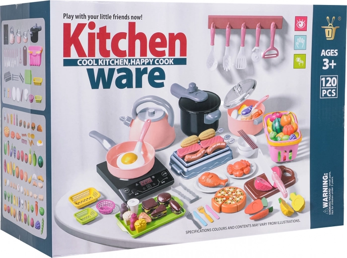 Mega kinderspeelkeukenset met servies en etenswaren, 120 delen