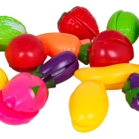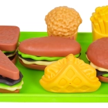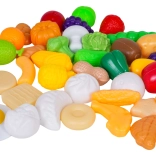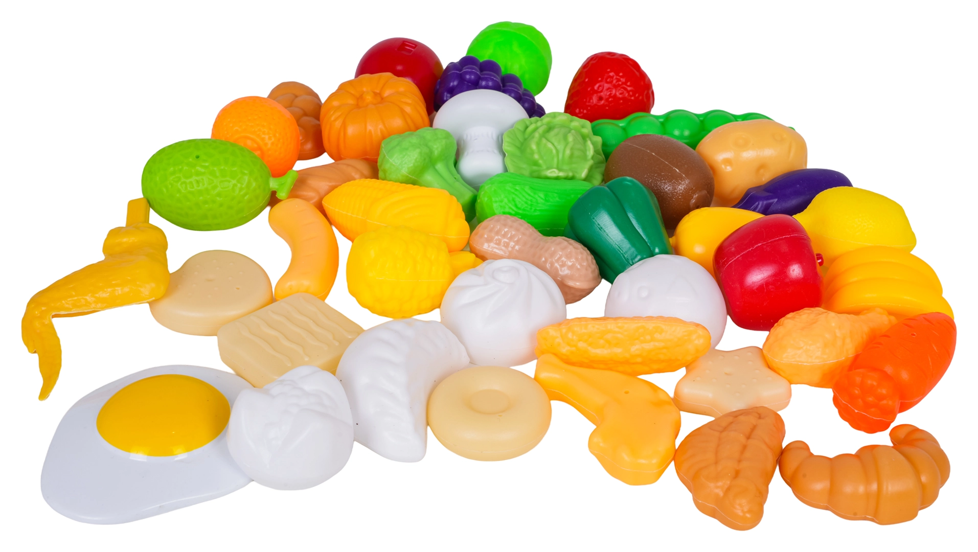 • Rijke set etenswaren inclusief fruit, groenten, desserts en fastfood; deels met klittenband om te snijden.