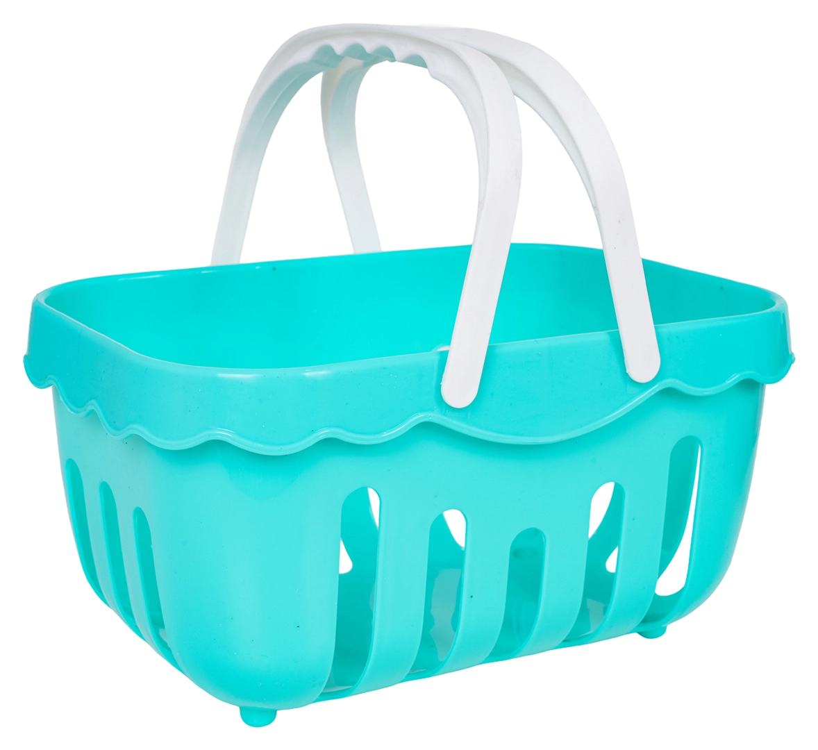 De grote boodschappenmand en de kleurrijke set fruit en groenten, inclusief stukken met klittenband, helpen bij het herkennen van etenswaren en trainen de fijne motoriek tijdens het snijden.