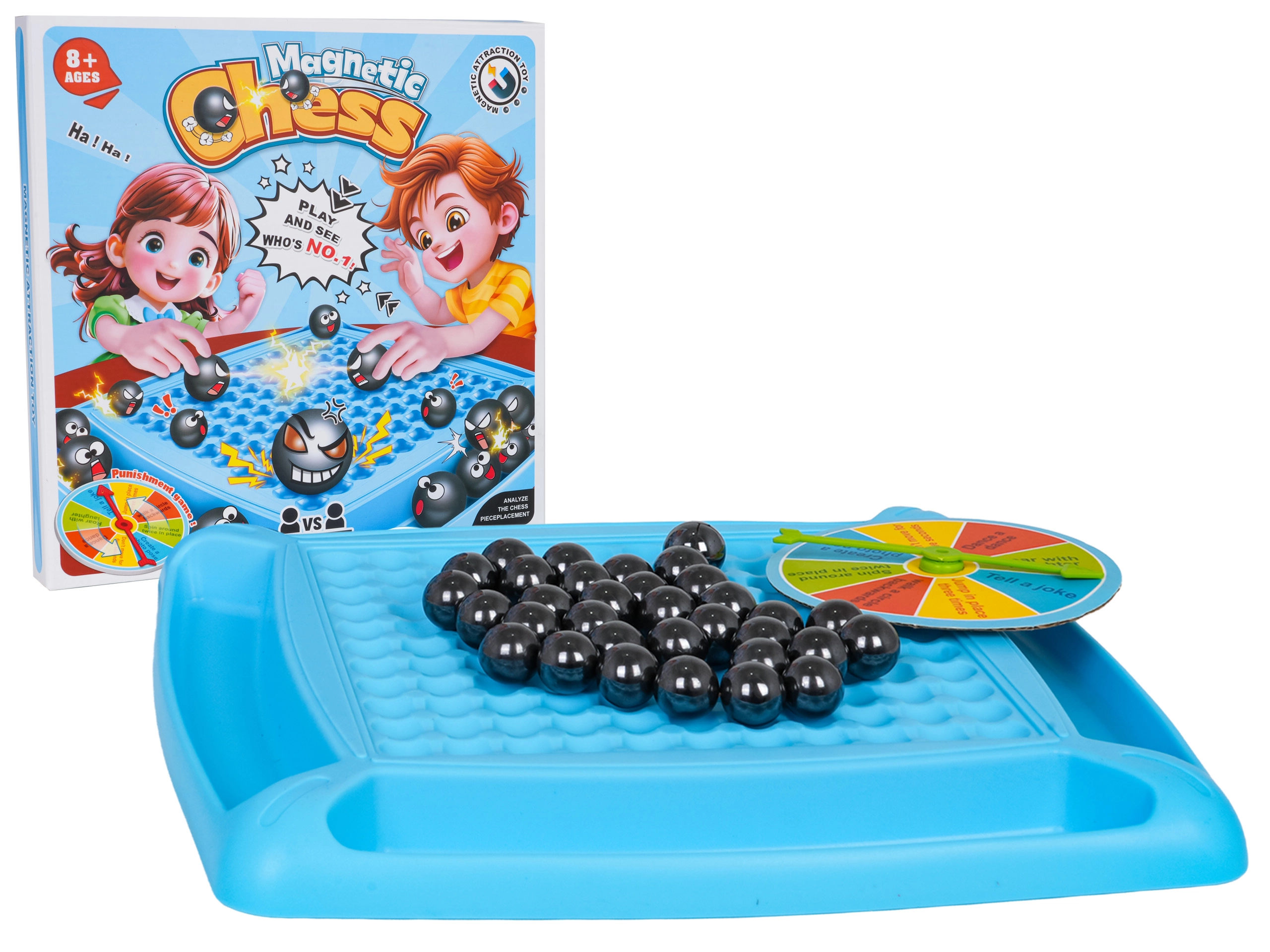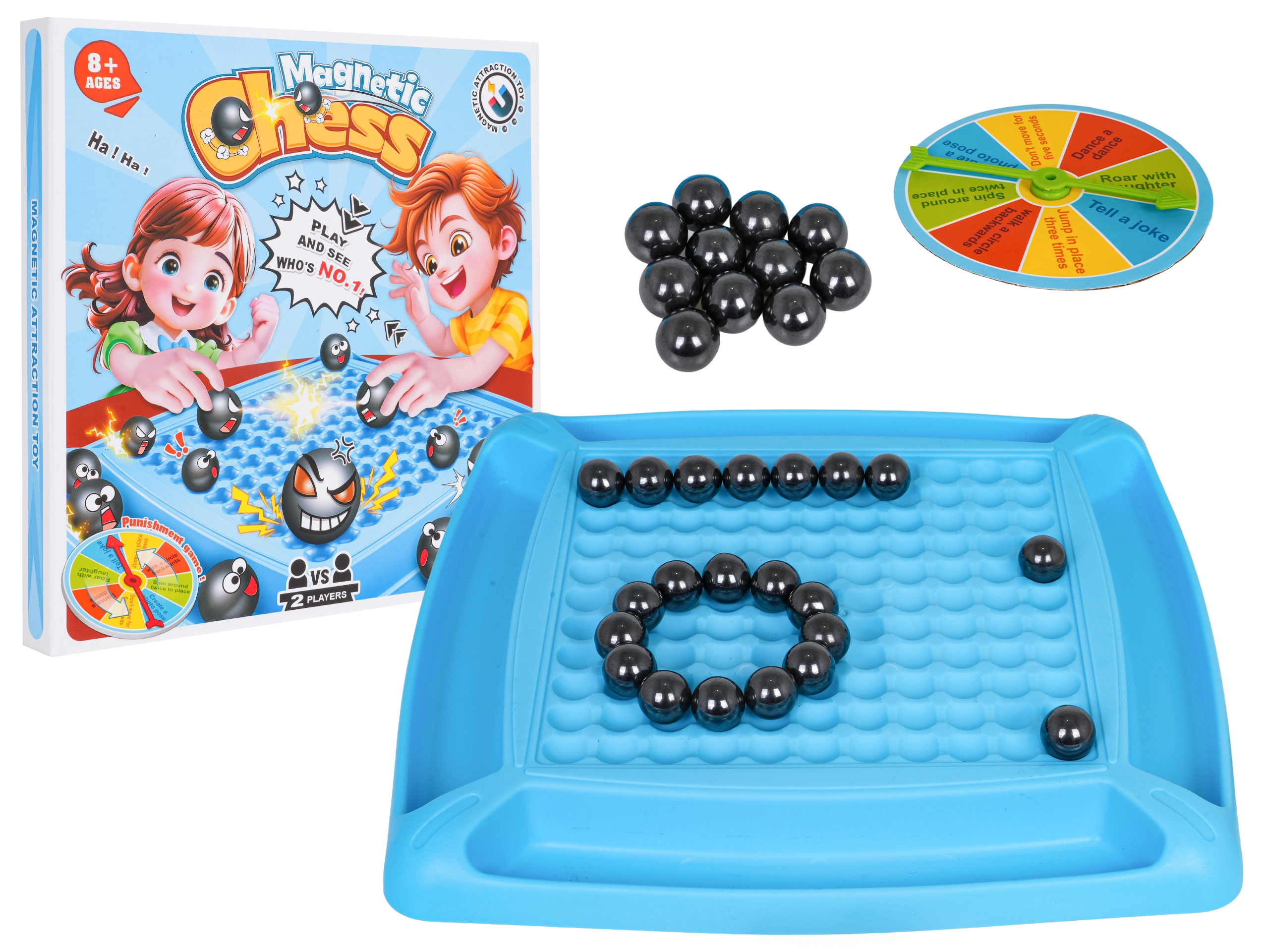 De regels zijn eenvoudig: beide spelers werken met magnetische kogeltjes en voltooien het doel van de gekozen variant. De verliezer draait aan het uitdagingswiel en krijgt een grappige opdracht – spanning en plezier gegarandeerd.
