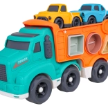 Inclusief 2 losse autootjes voor fantasierijk rijden. Kinderen kunnen ze laden, vervoeren en via de laadklep van de transporter weer uitladen.
