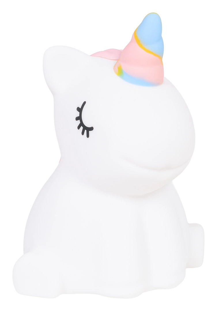 Dit schattige eenhoornlampje is de ideale slaapmaatje voor kinderen vanaf 3 jaar. Het zachte BPA-vrije siliconenlichaam voelt prettig aan en is veilig; het licht is warm en verstoort de slaap niet. Dankzij de compacte afmetingen past het perfect op een nachtkastje of plank.