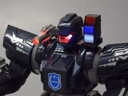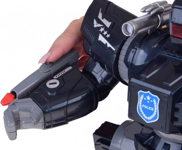 Massieve benen en brede voeten voor stabiel lopen, POLICE-details, badges en een schouder-lichtbalk. Beweeglijke armen maken dynamische poses mogelijk.