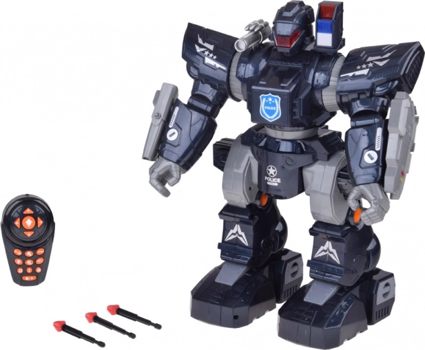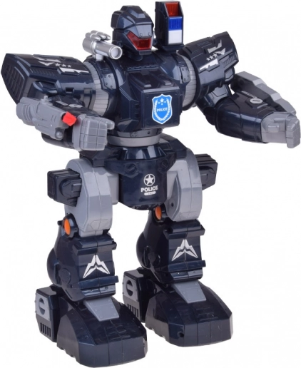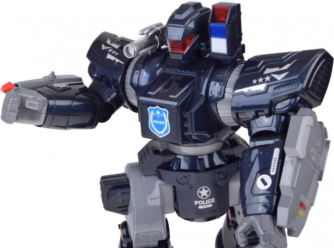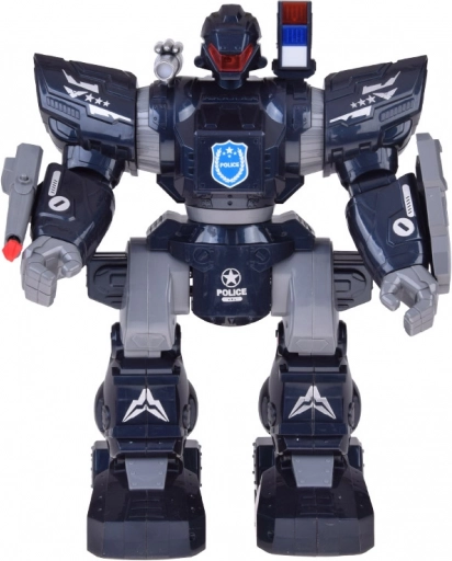 Interactieve politierobot met afstandsbediening voor actievolle fun voor kinderen. Hij kan bewegen, draaien, dansen op melodieën, heeft lichteffecten, geluidseffecten en schiet zachte projectielen. Dankzij de grote afmetingen ca. 38 × 30 × 16 cm, instelbaar volume en demomodus is het een perfect cadeau voor kleine fans van politie en robots.