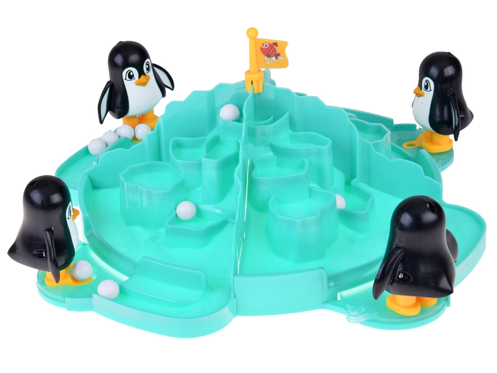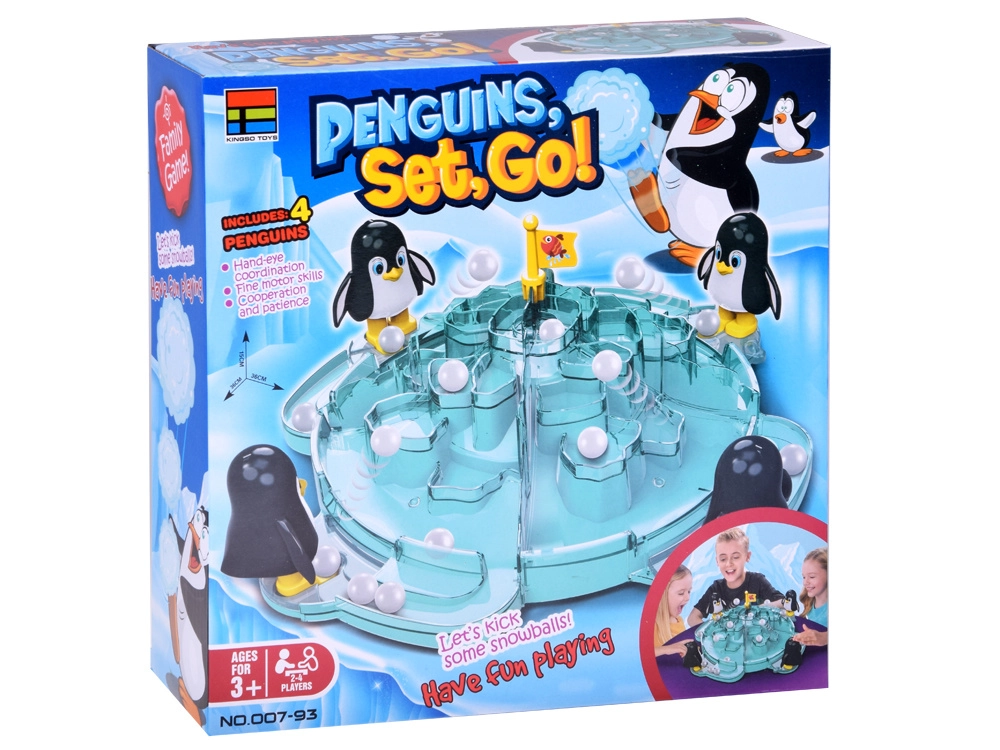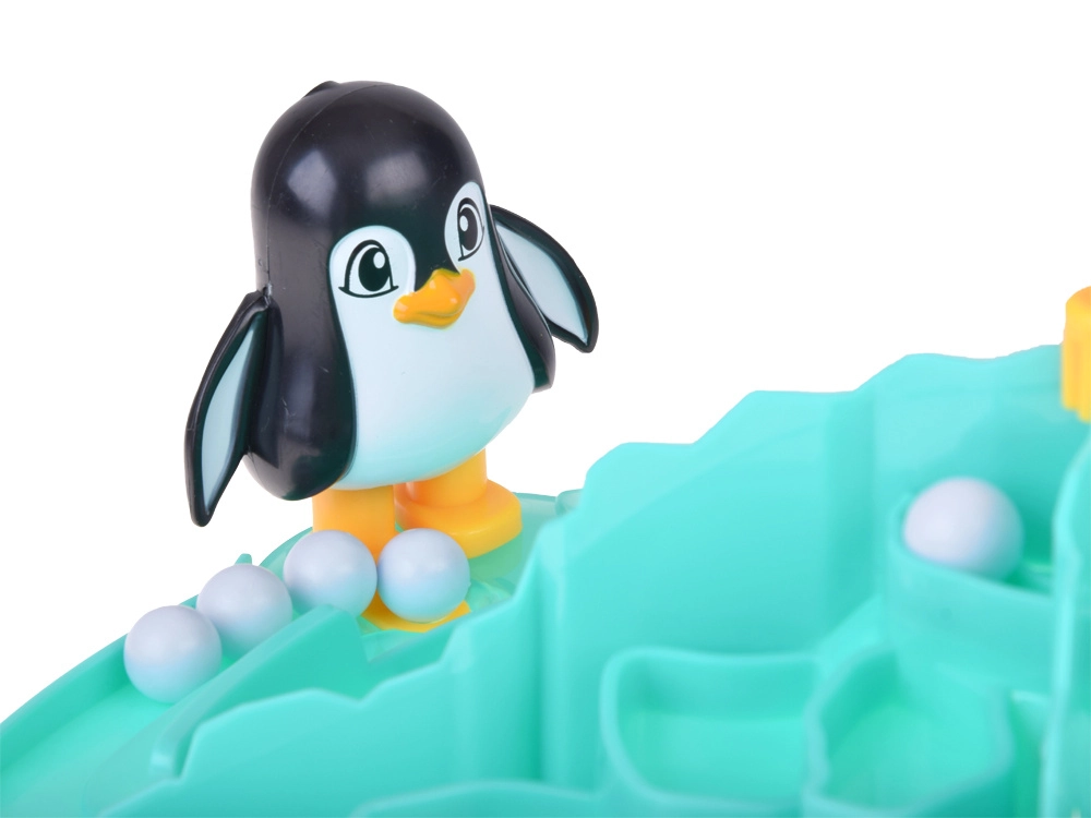 Druk op het hoofd van de pinguïn en stuur de sneeuwbal over de ijzige baan. Het eenvoudige mechanisme is leuk en makkelijk te bedienen, ook voor jongere kinderen.