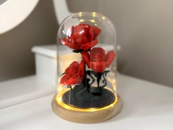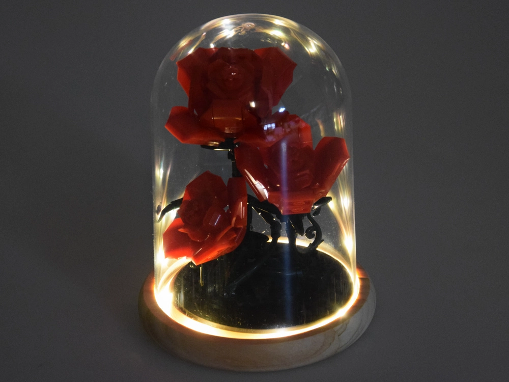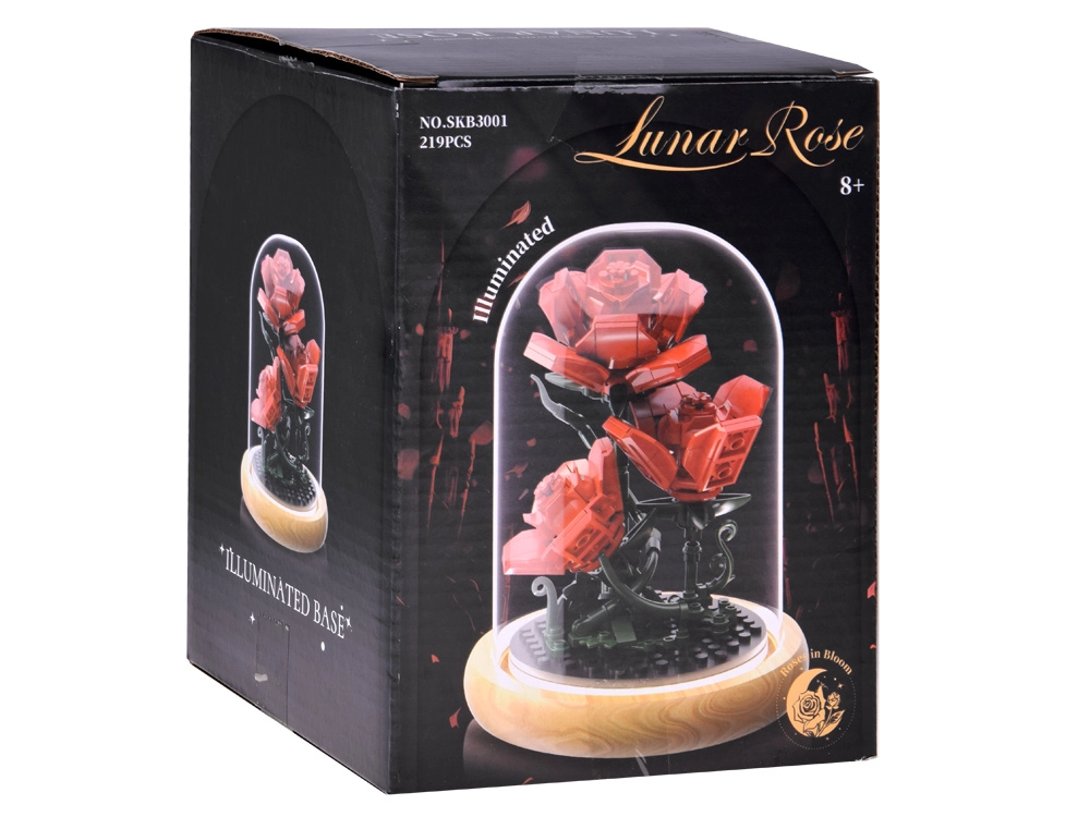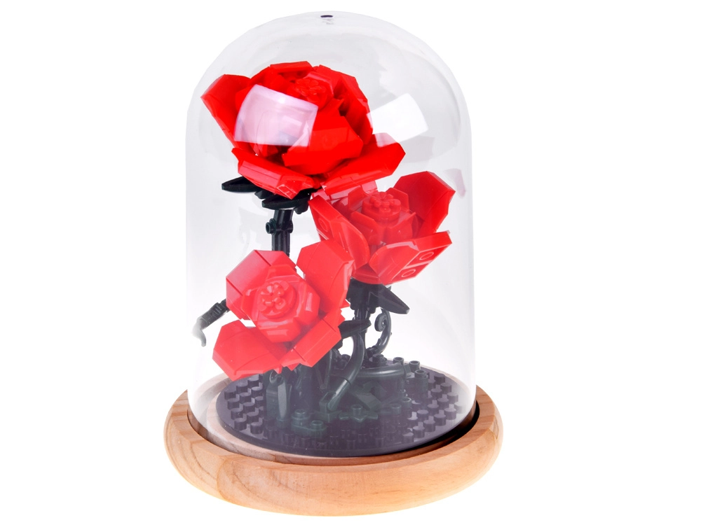 Deze design-bouwset combineert leuk bouwen met een decoratief effect. De roos in de heldere koepel oogt als een klein kunstwerk en dankzij de warmwitte LED-verlichting komt hij vooral ’s avonds tot zijn recht. Stevige kunststof onderdelen klikken gemakkelijk in elkaar en behouden de vorm, waardoor het eindmodel stabiel is en klaar om tentoon te stellen.