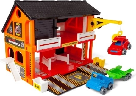 Ontdek de realistische autoservice voor kinderen met twee serviceplaatsen, oprijrampen, een functionele lift en kraan om voertuigen op te tillen. Openende deuren en tal van bewegende onderdelen zorgen voor uren speelplezier. Inclusief 2 autootjes, 1 aanhanger, 2 containers voor olie en gebruikte onderdelen en 34 stickers om de omgeving naar eigen fantasie af te maken.