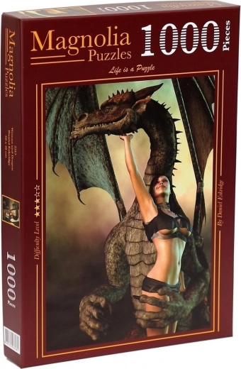Stijlvolle puzzel met het motief van een meisje en een draak voor uitdagender legplezier. 1000 stukjes zorgen voor uren vermaak en ontspanning, het voltooide beeld meet ca. 48 × 68 cm – ideaal om in te lijsten.