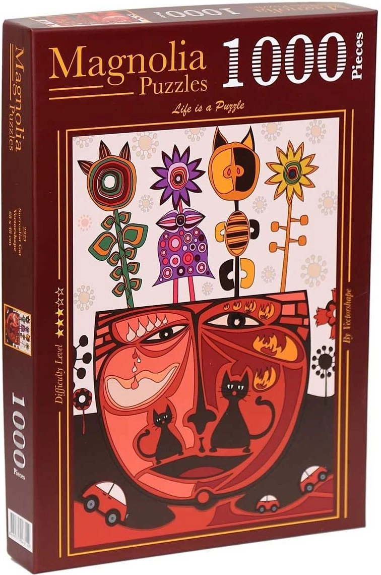Ontdek een creatieve uitdaging met deze puzzel van 1000 stukjes met het thema surrealistische katten van het merk MAGNOLIA. Dankzij de hoogwaardige afwerking, nauwkeurige stansvormen en het formaat na voltooiing van ca. 48 × 68 cm geniet je van heerlijke ontspanning en een goede concentratietraining.
