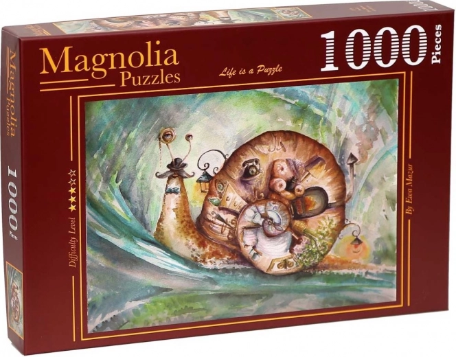 Deze slakkenpuzzel brengt een stijlvol en rustgevend motief dat perfect past bij ontspanning thuis. Dankzij 1000 stevige stukjes geniet je van soepel leggen en een kwalitatief resultaat dat geschikt is om in te lijsten.