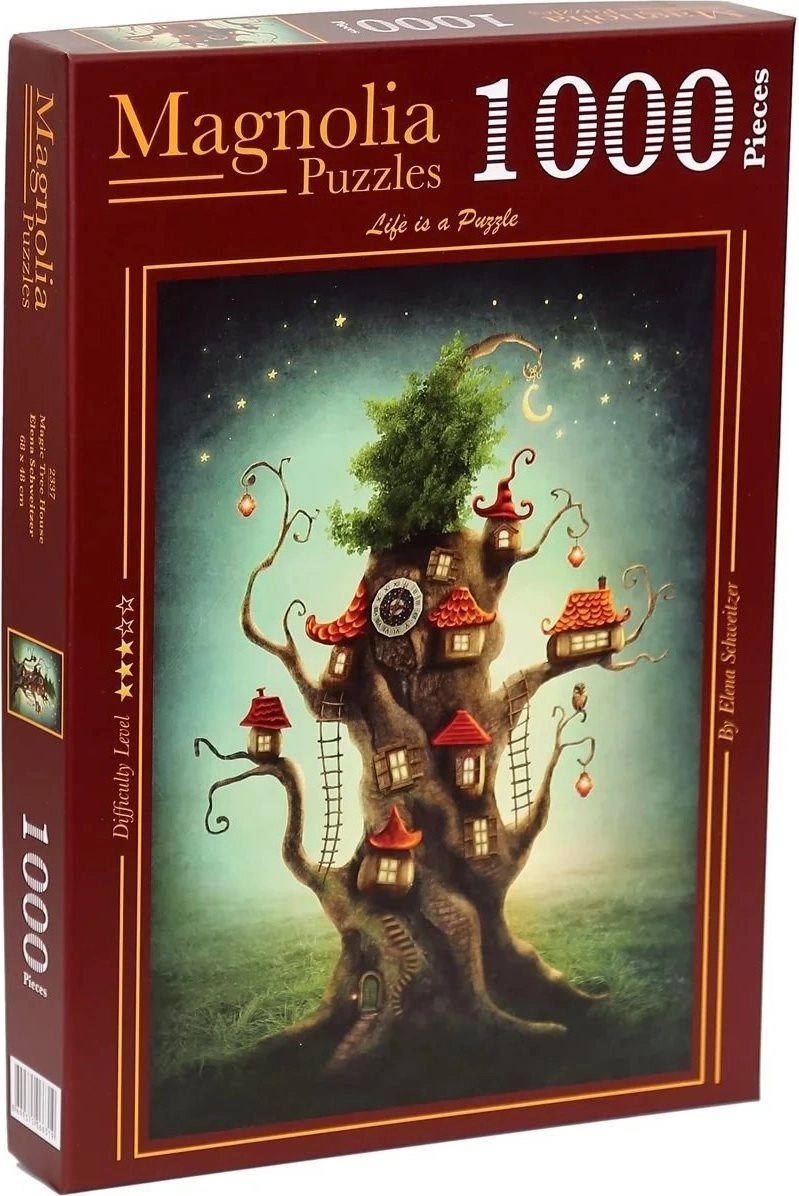 Geniet urenlang van het leggen van een gedetailleerde illustratie met het thema fantasierijk boomhuis. De puzzel met 1000 stukjes is een geweldige uitdaging voor volwassenen en oudere kinderen en bevordert geduld, concentratie en ruimtelijk inzicht.