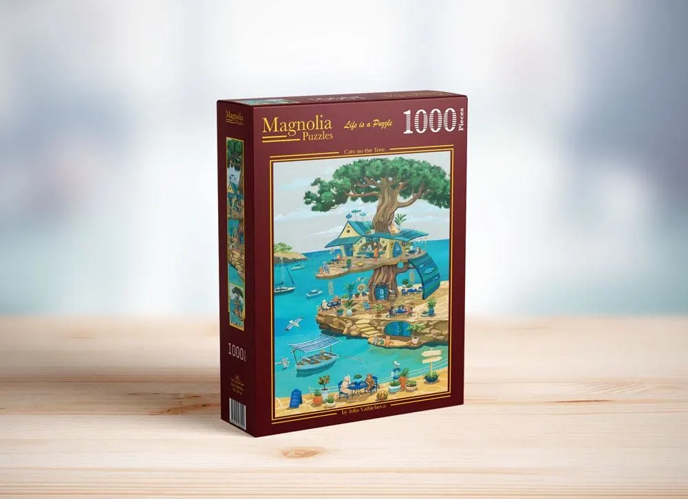 Ontdek het plezier van puzzelen met het prachtige motief van katten die rusten op boomtakken. Deze puzzel met 1000 stukjes biedt een prettige uitdaging en vormt na het leggen een decoratief beeld van 48 × 68 cm, dat elke liefhebber van katten én puzzels zal bekoren.