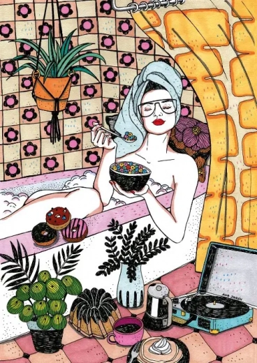 De elegante puzzel met een badkamer- en granenmotief zal elke liefhebber van esthetische illustraties bekoren. Dankzij 1000 precies uitgesneden stukjes biedt hij een prettige uitdaging en een prachtig resultaat van circa 48 × 68 cm – ideaal om in te lijsten.