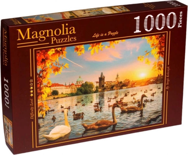 Geniet van ontspanning met het leggen van een kwalitatieve puzzel met het motief van zwanen en de KARELSBRUG. De verpakking bevat 1000 stukjes en na het leggen ontstaat een afbeelding van 68 × 48 cm – ideaal om in te lijsten.