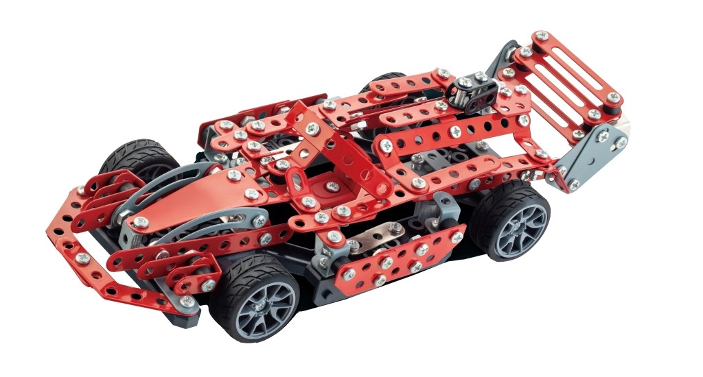 Bouw je eigen racewagen van metaal! Deze metalen formule-bouwset met 287 onderdelen combineert duurzame metalen componenten en kunststof accessoires, die met schroefjes en moertjes worden verbonden. Biedt leuk en tegelijk uitdagend bouwplezier en ontwikkelt geduld, handigheid en technisch inzicht – een perfecte keuze voor kleine én grote constructeurs.
