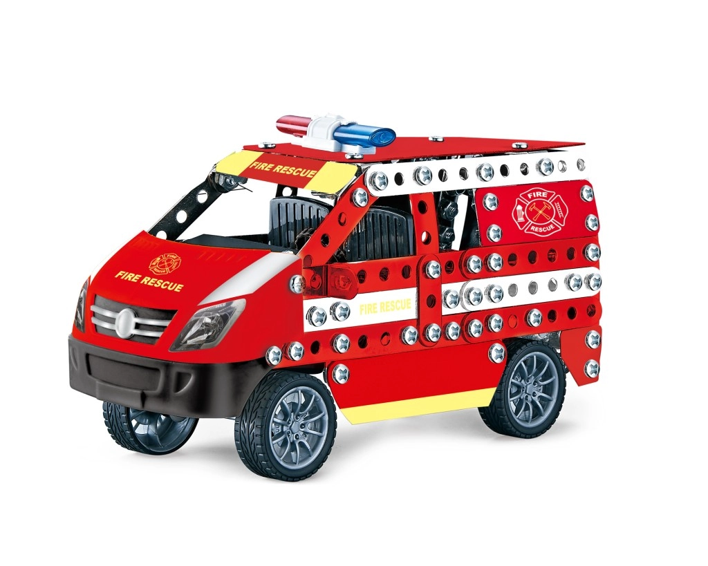 Stel je eigen model van een hulpverleningsvoertuig samen uit een robuuste set met 314 onderdelen. De combinatie van metalen delen en kunststof accessoires wordt verbonden met schroefjes en moertjes, wat zorgt voor een stevige constructie, lange levensduur en tegelijk leuk, maar uitdagend bouwplezier.