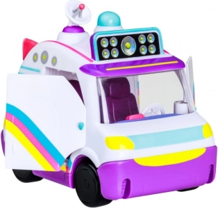 Inclusief een exclusieve figuur met accessoires die de speelmogelijkheden vergroten en de verbeelding prikkelen. De bestelwagen heeft een gedetailleerd interieur, rollende wielen en een opvallende kleurstelling met regenboogeffecten. De set is compatibel met andere Dierenzaken-figuren, zodat je makkelijk een compleet team samenstelt.