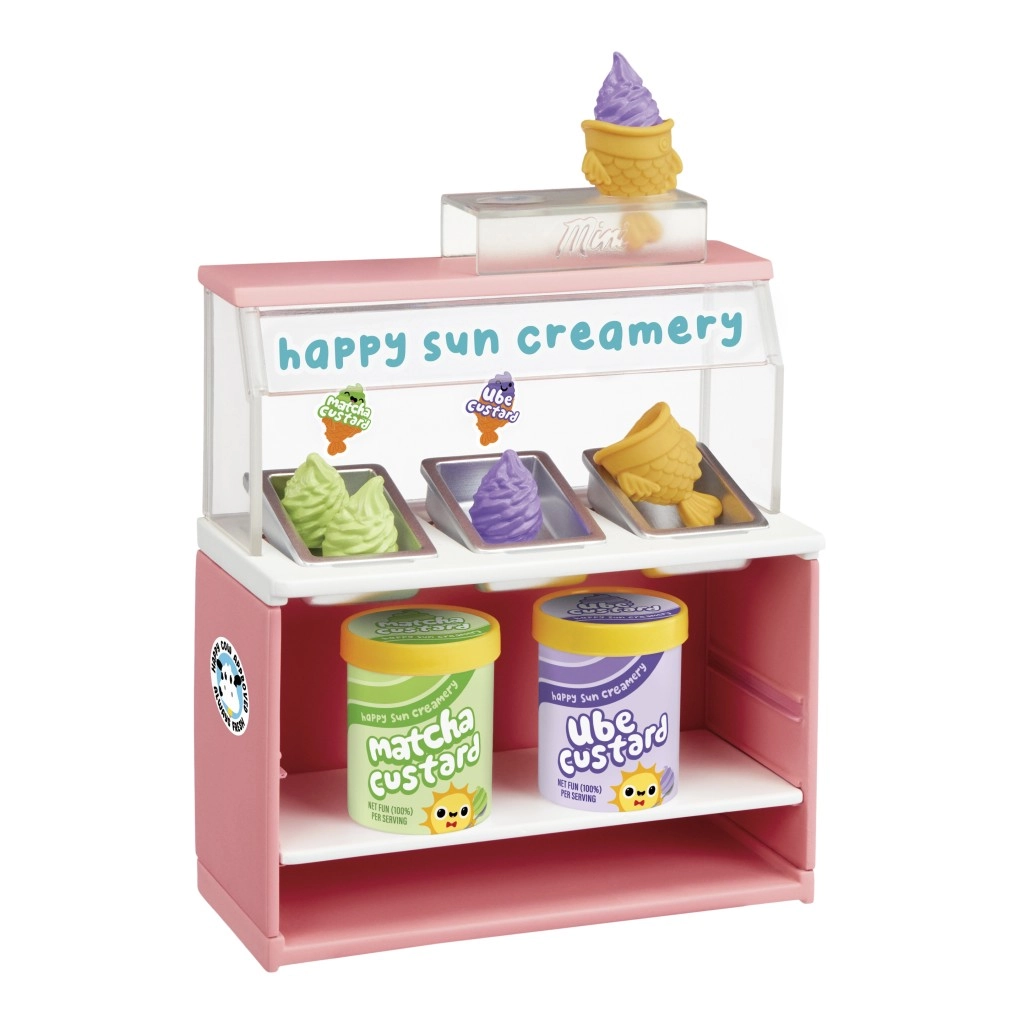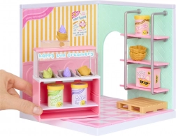 Een vitrine, hoorntjes en bakjes met smaken zoals Matcha en Ube geven je miniscène een zoete stijl. Ideaal voor fans van mini-eten en creatief stylen.