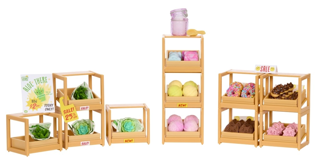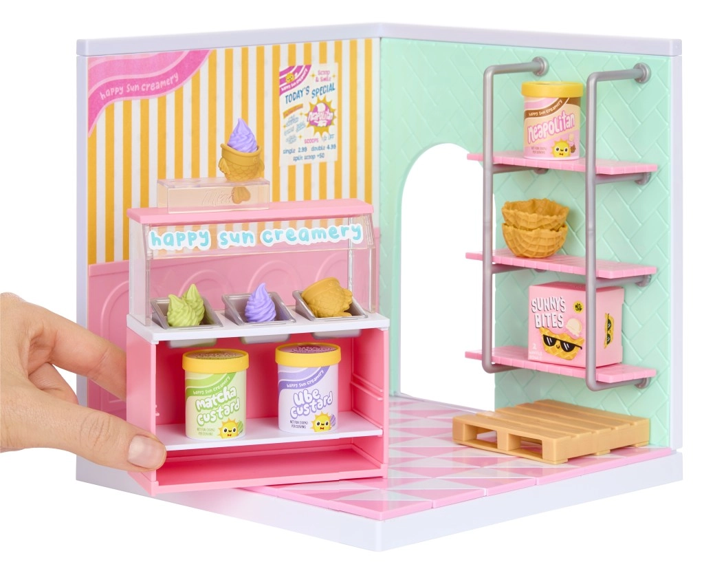 Kies uit diverse stijlen – van de schattige “Happy Sun Creamery” met ijsbolletjes, via de “Stay Fresh Salad Bar”, “Sun‑Baked Sweets” bakkerij, tot vriesvitrines en marktkramen met kratjes. Stapelbare modules en inschuifbare bakken maken eenvoudige herindelingen en maximaal ruimtegebruik mogelijk. Dankzij de compacte capsules zijn ze ook ideaal als verzamelverrassing of cadeau.