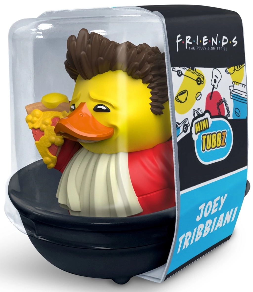 Breid je collectie uit met een stijlvol mini TUBBZ-eendje, geïnspireerd door de serie Friends. Het figuurtje van Joey Tribbiani in het iconische eend-ontwerp is slechts 5,5 cm hoog, perfect voor op een plank, bureau of als cadeau voor fans. Geniet van een verzamelobject voor een aantrekkelijke prijs en maak je collectie compleet.